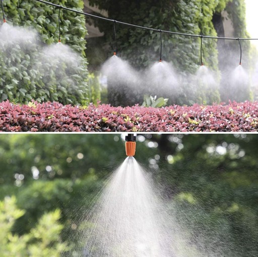 - 11 DYSZ ZRASZAJĄCYCH - wysokiej jakości dysze wytwarzają bardzo lekką i delikatną kurtynę wodną, która kontroluje temperaturę otoczenia i pozwala na jej skuteczne obniżenie. Średnica dyszy o 6mm tworzy "klimę ogrodową".