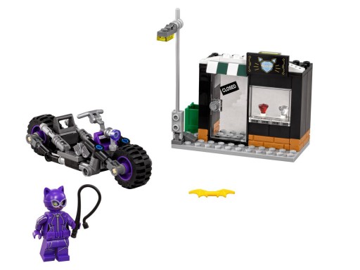"Kobieta-Kot™ obrabowała jubilera i próbuje uciec swoim superszybkim motocyklem. Pędź razem z Batgirl™ i Robinem™ na miejsce zbrodni i spróbuj ją powstrzymać. Uważaj na bicz Kobiety-Kot i lampę, którą przewraca swoim motocyklem. Zaatakuj ją Batarangiem Batgirl i pomóż Robinowi zeskoczyć z dachu sklepu na motocykl."