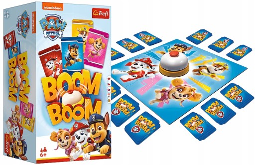 W Boom Boom gracze starają się uzbierać zestawy tych samych bohaterów bajki dla dzieci "Psi Patrol:. Gracze wymieniają jednocześnie swoje karty z kartami na planszy. Po złapaniu 4 takich samych postaci gracz uderza w dzwonek i sygnalizuje zebranie gotowego stosu. Gracze mogą polować na karty tego samego typu, dzięki czemu rozgrywka jest jeszcze bardziej emocjonująca. Gracz, który zbierze wszystkie swoje zestawy bohaterów z Psiego Patrolu, zostaje zwycięzcą!