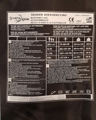 Kamizelka posiada certyfikat CE, wykonana została dla naszej firmy w Polsce zgodnie z aktualną normą EN ISO 12402-05 : 2007.