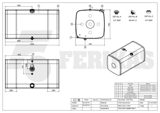 Nasze zbiorniki paliwa i oleju hydraulicznego są wykonane z greckiego aluminium o grubości 2,5 mm, pokrytego z obu stron polimerem, tym samym metalem, co oryginalne zbiorniki paliwa i oleju hydraulicznego.