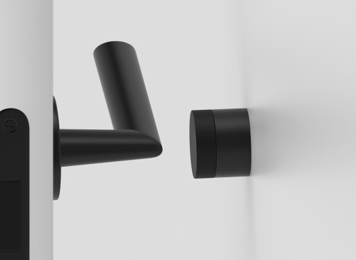 Odbojnik, stoper drzwiowy, w kształcie walca, montowany na ścianę. Ogranicznik posiada odpowiednio dobrane wymiary, które zabezpieczają klamkę zamontowaną na drzwiach przed uderzeniem w ścianę - odbojnik ma większą średnicę od większości klamek stosowanych przy drzwiach.