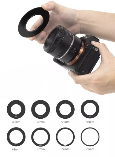 - 8x pierścień umożliwiający dopasowanie do dowolnego obiektywu (49mm, 52mm, 55mm, 58mm, 62mm, 67mm. 72mm, 77mm)