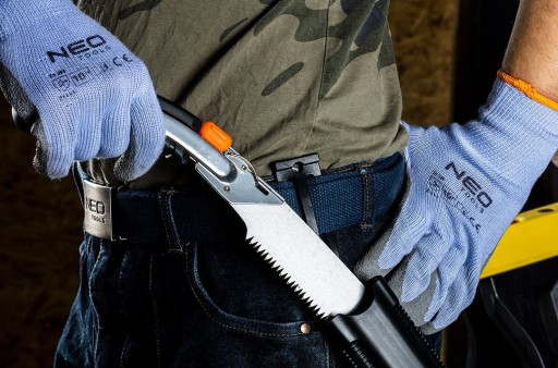 - Charakterystyka produktu - Zęby 3D, ostrzone laserowo, Zęby hartowane indukcyjnie, Ergonomiczny uchwyt, Pokrowiec na ostrze w zestawie, Możliwość przypięcia pokrowca do paska, Łatwa wymiana ostrza