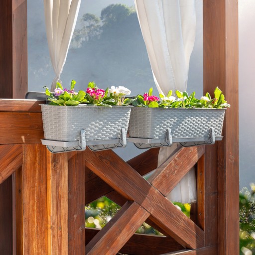 ✅Uchwyty pozwalają oszczędzić miejsce na balkonie, dzięki możliwości powieszenia skrzynki z kwiatami na balustradzie, jednocześnie gwarantując jej utrzymanie stabilności.