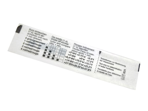 Interpretacja wyniku jest bardzo prosta. Na opakowaniu testera znajduje się szczegółowa legenda do wyników testu twardości wody. Zamknięty jest w papierowym, szczelnym opakowaniu.