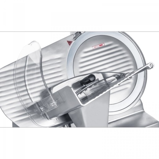 Wydajna praca możliwa jest dzięki dużej mocy (120 W) oraz przemyślanej konstrukcji urządzenia. Nóż ze specjalnej stali stosowanej do produkcji ostrzy gastronomicznych ma średnicę 220 mm. Pewnie i szybko kroi produkty spożywcze w plastry o grubości 0-12 mm. Krajalnicę przystosowano do odkrawania płatów 130 mm (wys.) na 160 mm (szer.)