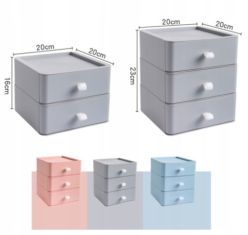 Zamknięte szuflady w kolorze pastelowym (do wyboru: różowe, niebieskie) z białymi silikonowymi uchwytami ułatwią utrzymanie porządku na Twoim biurku, ponadto wyglądają niezwykle atrakcyjnie przez co dodadzą uroku każdemu wnętrzu. Możliwość stworzenia organizera z dowolnej ilości szufladek w dowolnym kolorze lub kilku różnych kolorach!