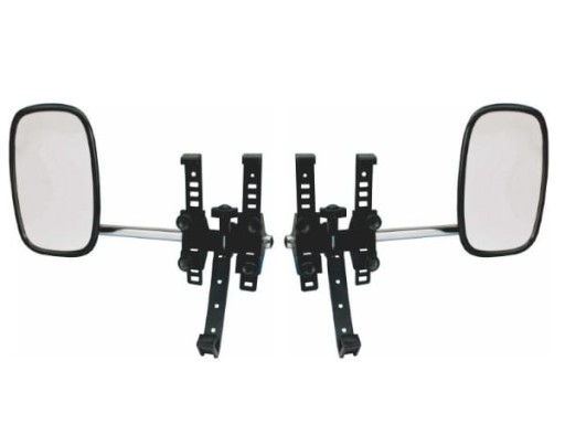 Uniwersalne lusterka do holowania przeznaczone dla większości samochodów osobowych. Komplet stanowią dwa lusterka wraz z wyposażeniem montażowym. Lusterka posiadają swobodę regulacji, dzięki temu można je dopasować idealnie do kształtu lusterka samochodowego. Przyssawki w mocowaniu pozwalają na pewne i stabilne ich zamocowanie. Odporne na wibracje, możliwość dostosowania do widoczności kierowcy. Niezbędne podczas holowania przyczepy.