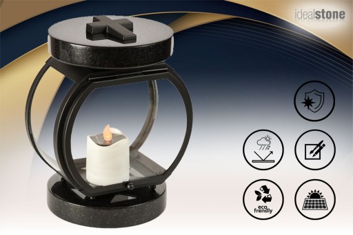 Ekskluzywny lampion nagrobny marki Idealstone, wykonany z naturalnych materiałów - kamień i stal nierdzewna. Trwały i elegancki.