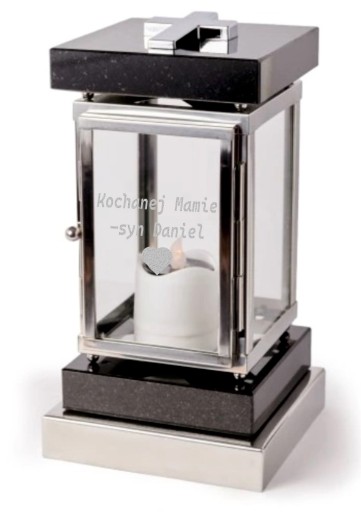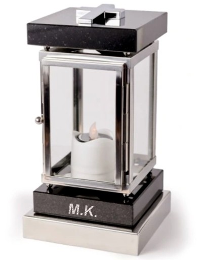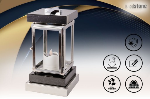 Ekskluzywny lampion nagrobny kwadratowy marki Idealstone, wykonany z naturalnych materiałów - kamień i stal nierdzewna. Trwały i elegancki.