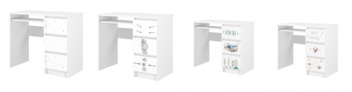 to praktyczny i funkcjonalny mebel, który znajdzie swoje zastosowanie w każdym pokoju dziecięcym. Ergonomiczne wymiary zapewniają swobodne umeblowanie pomieszczenia. Biurko wykonane jest z płyty wiórowej w kolorze białym, wykończone okleiną.
