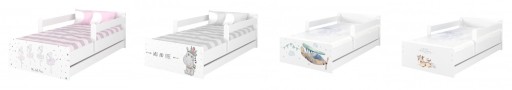 - Łóżko z dwoma nakładanymi barierkami zabepieczającymi. Doskonale chronią dziecko przez upadkiem, można je w dowolnym momencie zdjąć bez dziur po nawirtach.