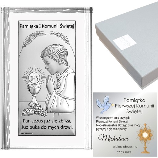Pamiątka Pierwszej Komunii Świętej Prezent srebrno