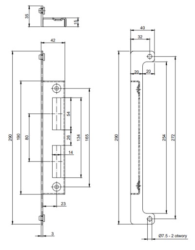 Zaczepu używa się aby zablokować możliwość otwarcia furtki w drugą, niepożądaną stronę. Otwory w odbojniku stanowią miejsce na zapadkę oraz rygiel zamka.