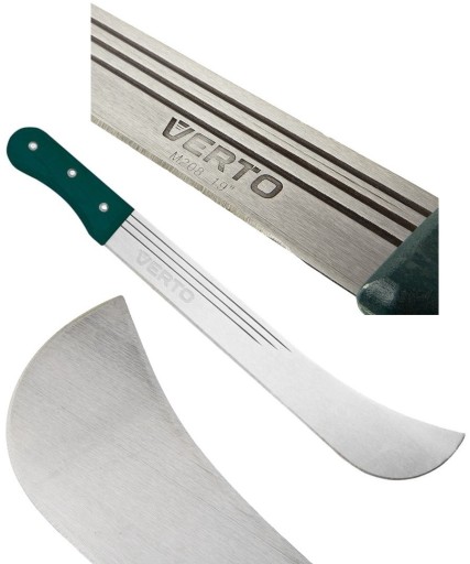 Karczownik o całkowitej długości 480 mm od ogrodowej marki VERTO. Maczeta została wykonana z trwałej, hartowanej stali oraz drewnianego uchwytu, przymocowanego do ostrza za pomocą nitów. Ergonomiczna rękojeść pozwala na wygodne manewrowanie narządzeniem. Specjalny kształt ostrza wpływa z kolei na płynność ruchów oraz efektywność pracy.