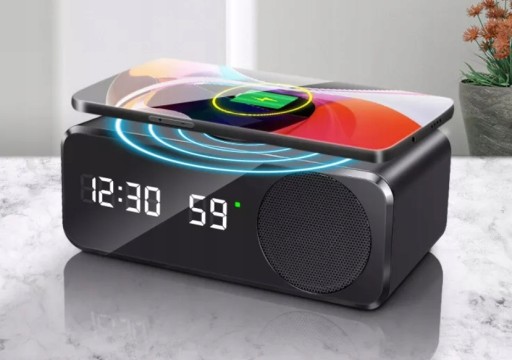 ŁADOWARKA INDUKCYJNA 15W BUDZIK GŁOŚNIK 3W1
