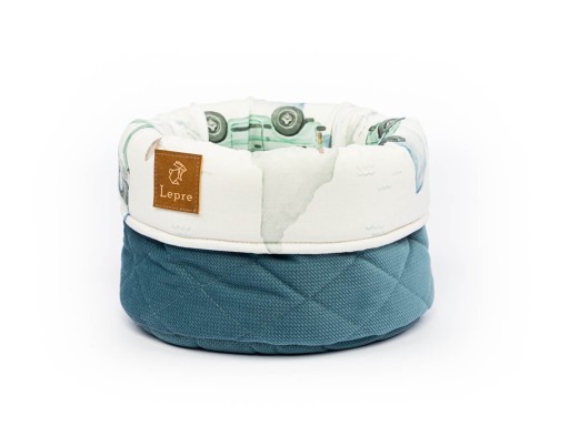 Piękny, miękki pojemnik/koszyk do przechowywania pieluszek, kosmetyków oraz innych akcesoriów dla niemowlaka.