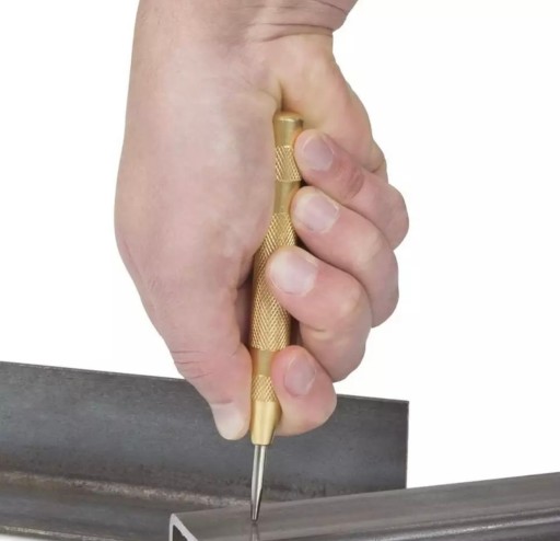 Przycisnąć punktak ostrym końcem do powierzchni i mocno nacisnąć . Spowoduje to uderzenie iglicy i konkretne zaznaczenie punktu.