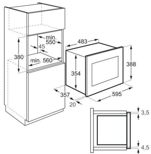 Kuchenka mikrofalowa o pojemności 25 l i mocy mikrofal 900 W, posiada 8 poziomów mocy. Elektroniczne sterowanie, średnica talerza obrotowego 270 mm. Moc grilla 1000 W.