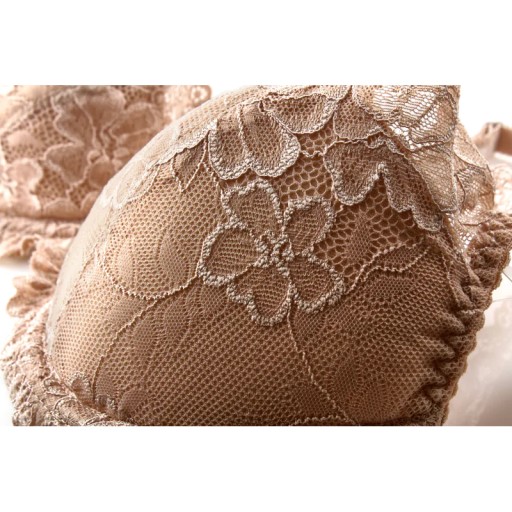 Zjawiskowy biustonosz Carmela. Pięknie prezentuje się na każdym biuście. Miseczki wykonane z finezyjnej koronki, która otula seksownie piersi i delikatnie pnie się po ramiączku. Zgrabne miseczki osadzone na koronkowym bawecie. Plecy gładkie z dzianiny elastycznej, wzmocnione fiszbiną pionową. Ramiączka regulowane, nieodpinane. Haftka dwurzędowa z trójstopniową regulacja.