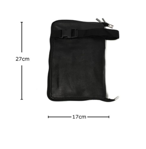 Pas dla wizażysty, który znacznie ułatwia wykonywanie makijażu na klientkach. Gwarantuje higieniczne i podręczne przechowywanie minimum 22 sztuk pędzli. Pokrowiec został wyposażony w dodatkowe kieszenie pomiędzy uchwytami, w której można przechowywać inne, niezbędne akcesoria lub kosmetyki. Regulowany pasek pozwala dowolnie dopasować obwód i zwiększa komfort pracy.