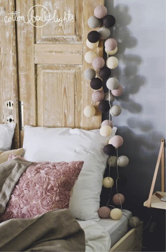 Nasze Cotton Balls wyróżniają się tym, że przewód z lampkami jest zasilany z gniazdka elektrycznego, dla wygody użytkowania posiada również włącznik. Zestawy dostępne są w 4 wariantach: