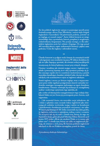 Chwała Autorowi za podjęcie trudu dotarcia do rozmaitych źródeł i udostępnienie nam rezultatów tej pracy. W efekcie dostaliśmy do rąk nie tylko frapującą opowieść, ale również rodzaj encyklopedii tematycznej, do której będziemy wracać przy różnych okazjach. Uważny i wrażliwy, jak również znający morze i żaglowce czytelnik z pewnością zauważy, że w całej opowieści przewija się jeden znaczący aspekt. Jest to oczywiście wychowawcza, a przede wszystkim kształtująca charakter młodych ludzi, chociaż nie tylko młodych, rola uczestnictwa w rejsie na żaglowcu szkolnym.
