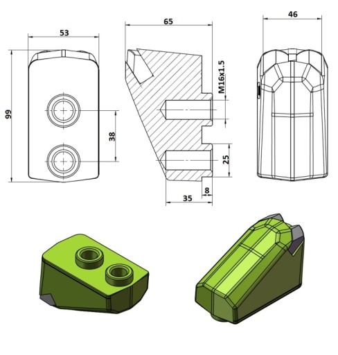 Otwór - 2 x 16mm