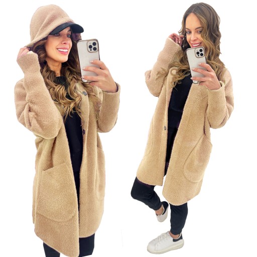 Wysoko gatunkowy płaszcz z ALPAKI Z WEŁNĄ, bardzo delikatny i miękki w dotyku.