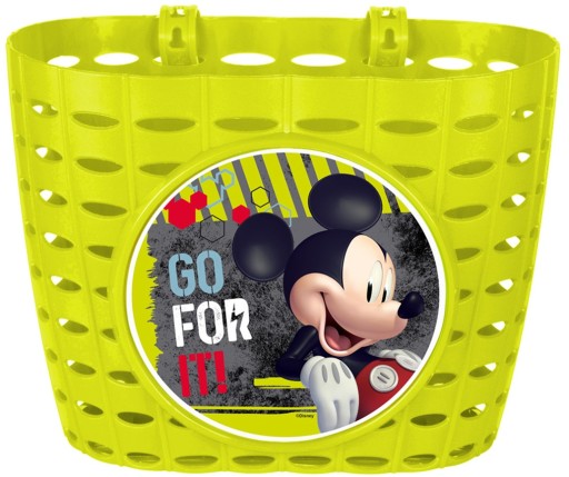 Koszyczek na kierownicę jest wykonany z kolorowego tworzywa sztucznego i ozdobiony naklejką z bajki DISNEY Mickey MOUSE.