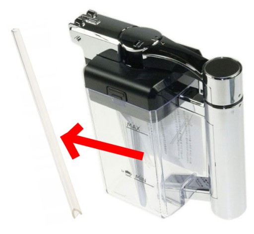 Silikonowy wężyk do zbiornika / dzbanka na mleko, odporny na wysoką temperaturę i dopuszczony do stosowania w przemyśle spożywczym.