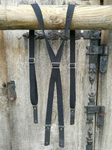 WYKONANE Z DOBREJ JAKOŚCIOWO GUMY SZELKOWEJ.POSIADAJĄ REGULACJĘ DŁUGOŚCI A SOLIDNE SZLUFKI SKÓRZANE DOBRZE UTRZYMUJĄ SPODNIE NA GUZIKACH.WSTAWKI WYKONANE SĄ Z WYSOKO GATUNKOWEJ SKÓRY LICOWEJ KOLORU CZARNEGO DZIĘKI TEMU SZELKI BĘDĄ SŁUŻYŁY PRZEZ DŁUGI CZAS I NA PEWNO NIE BĘDĄ JUŻ SIĘ ODPINAŁY.GUMA SZEROKA NA 2,50 CM.ROZCIĄGAJĄCA SIĘ NA 160 CM.GORĄCO POLECAM !!!
