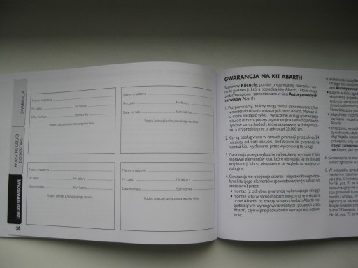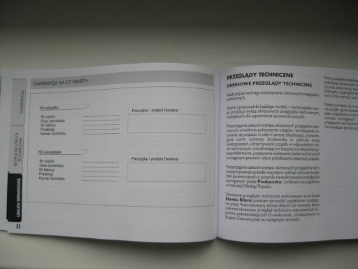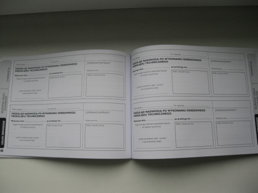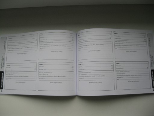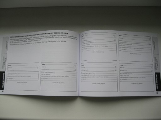 Oryginalna Polska książka serwisowa (przeglądów) do samochodów osobowych