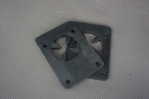 Podkładki oczywiście nowe w fabrycznym kartoniku . Zestaw zawiera komplet podkładek do 2 trucków . Wykonane z grubej i solidnej gumy, idealne do deskorolki i longboarda.