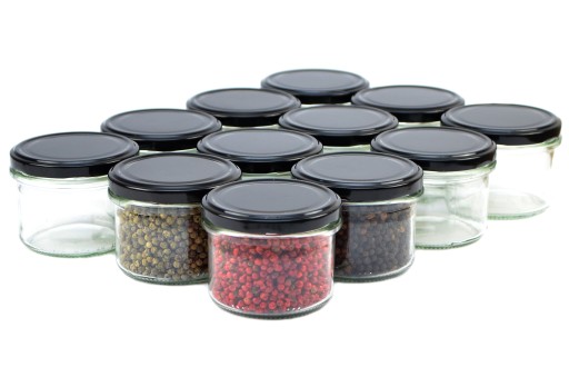 Przedmiotem sprzedaży jest 12 słoików 235 ml i 12 czarnych zakrętek