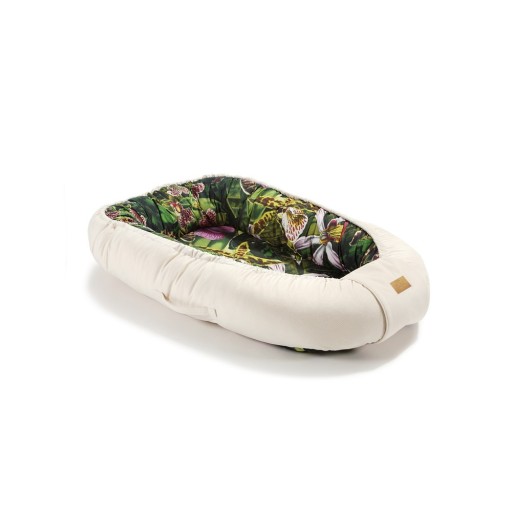 Wymiary: długość całkowita 110 cm, szerokość całkowita 70 cm, długość środka (materaca) 75 cm, szerokość środka (materaca) 40cm Wielofunkcyjny kokon niemowlęcy stworzony z miłości do dzieci: tak aby maluszek zawsze miał swoje wydzielone, przyjazne miejsce do zabawy, snu i odpoczynku pod czujnym okiem rodzica. Dno kokona wypełnione jest materacem z antyalergicznej pianki poliuretanowej, która zawiera kanaliki zapewniające bardzo dobrą cyrkulację powietrza. Maluszek leżąc w kokonie może spędzać czas z rodzicem, towarzysząc mu podczas różnych czynności, takich jak praca, odpoczynek na kanapie, kąpiel a nawet podczas aktywności na świeżym powietrzu. Dowiedz się więcej o kokonie BEST NEST! Nasz kokon tworzy miejsce, które daje maleństwu uczucie bezpieczeństwa. Kształt i miękkie brzegi kokona pomagają dziecku uspokoić się i zapobiegają wybudzaniu w przypadku wystąpienia odruchów moro. Miękkie brzegi działają jak ochraniacz, dzięki temu po umieszczeniu w łóżeczku lub w pobliżu twardego wezgłowia, kokon chroni dziecko przed urazem. Wysokość i miękkość brzegów kokona jest odpowiednia jako poduszka – podparcie. Dno kokona wypełnione jest materacem z antyalergicznej pianki poliuretanowej, która zawiera kanaliki zapewniające bardzo dobrą cyrkulację powietrza. Odpowiednia miękkość materacyka ułatwia fizjologiczne ułożenie pleców. Materacyk można wyjąć przed praniem, dzięki czemu łatwiej utrzymać czystość produktu. Konstrukcja na dole jest ściągana sznurkiem, co umożliwia łatwe dopasowanie rozmiaru. W przypadku starszych dzieci produkt może być rozwiązany, dzięki czemu tworzy się przyjazna strefa do zabawy nie ograniczająca ruchów nóżek. Sznurek ściągający jest dodatkowo zabezpieczony materiałem (plisą), dzięki czemu jest całkowicie bezpieczny dla dziecka, a plisa podkreśla elegancki design produktu Uchwyty wszyte po bokach kokona umożliwiają łatwe przenoszenie produktu. Produkt szyty ręcznie, z najwyższą dokładnością i z wykorzystaniem najlepszych jakościowo materiałów. Świetnie sprawdzi się w roli stylowego i nietuzinkowego prezentu dla maluszka. UWAGA: Kokon BABY NEST nie może być używany jako nosidełko, nie wolno przenosić w nim dziecka. Ze względów bezpieczeństwa produkt należy stosować pod opieką osoby dorosłej. Produkt uzyskał pozytywną opinię Instytutu Matki i Dziecka, nr Op-5075, ważna do 15.07.2021 r. Odcienie druków na tkaninach bądź odcienie surowców składowych produktów mogą różnić się w zależności od partii produkcyjnych. Nie stanowi to wady produkcyjnej.