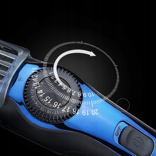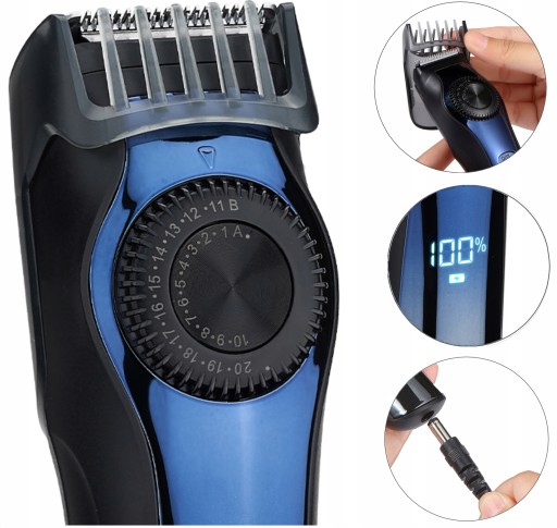 Szybkie ładowanie za pomocą kabla USB, długi czas pracy, płynna regulacja długości cięcia, procentowe wyświetlanie stanu naładowania baterii to tylko kilka z zalet tego urządzenia