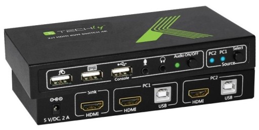 2-Potrowy przełącznik KVM HDMI/USB 2x1 Techly IDATA KVM-HDMI2U zapewnia doskonałą wydajność oraz funkcjonalność w nowoczesnym, multimedialnym świecie umożliwiając płynne przełączanie wysokiej rozdzielczości sygnału HDMI pomiędzy dwoma komputerami z portami HDMI oraz USB. Dzięki obsłudze standardu USB przełącznik oferuje możliwość kontroli i zarządzania dwóch komputerów przy użyciu jednego zestawu myszy i klawiatury USB oraz wyświetlacza HDMI. Przełączanie pomiędzy aktywnymi komputerami (portami) realizowane jest szybko i wygodnie za pomocą przycisku na przełączniku lub za pomocą skrótów klawiszowych.
