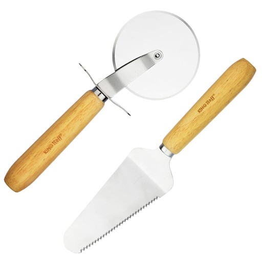 Zestaw przyborów do pizzy: radełko do krojenia i łopatka do serwowania.