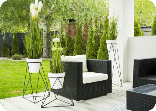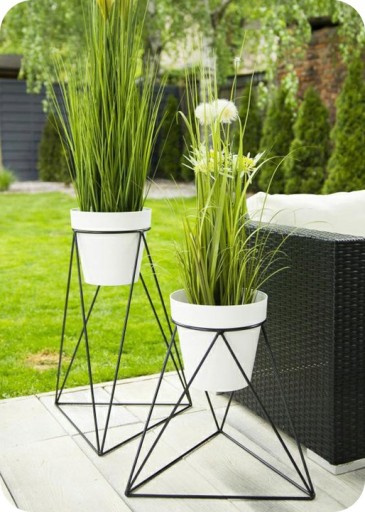 Nowoczesny kwietnik o trójkątnej podstawie.