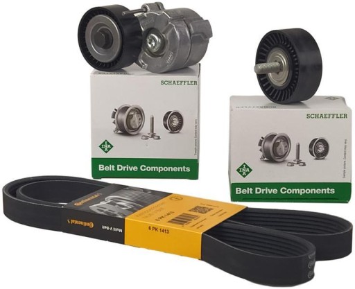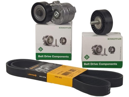 - Przedmiot: Napinacz paska klinowego z rolką prowadzącą INA oraz pasek klinowy firmy CONTITECH