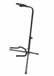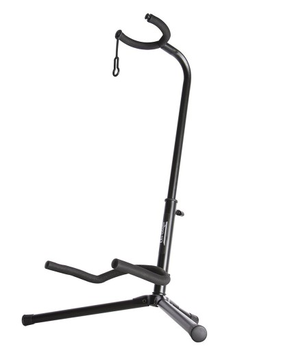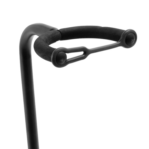 Solidny, stabilny i uniwersalny (będzie pasował do gitary klasycznej, akustycznej, elektrycznej i basowej) statyw gitarowy marki On-Stage. Metalowe rurki obłożone są super miękką gumą, dzięki której Twój instrument nie uszkodzi się podczas odkładania na statyw, a regulowana wysokość oparcia będzie porządnie stabilizować gitarę, której gryf dodatkowo możesz "zamknąć" gumową zawleczką.