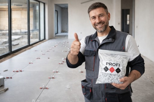Ma to duże znaczenie, ponieważ zapobiega pękaniu klipsów podczas montażu, zapewnia prawidłowe wyłamywanie podczas demontażu i precyzyjne płaszczyznowanie układanych płytek. Niskiej jakości, tani polipropylen może powodować, że klipsy zrywają się podczas zaciskania co przekłada się na konieczność ich żmudnego usuwania, a nawet uszkodzenie płytek. Użycie oryginalnych klipsów PROFI minimalizuje to ryzyko, ułatwia pracę, oszczędzając czas i koszty.