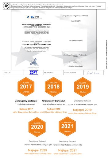 PROFI Diamond Technique to zarejestrowana marka na terenie całej Unii Europejskiej, co potwierdza oficjalny certyfikat rejestracji — dzięki temu masz pewność, że wybierasz sprawdzone, legalnie chronione rozwiązania stworzone z myślą o profesjonalistach.