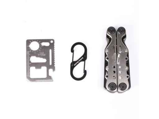 Uniwersalny multitool to kompletny zestaw narzędzi kieszonkowych, który składa się m.in. z kombinerek, scyzoryka czy pilnika oraz eleganckiego etui. Zestaw jest niewielkich rozmiarów a tym samym funkcjonalny i kompaktowy a co najważniejsze posiada niezliczoną ilość zastosowań. Multitool idealnie sprawdzi się podczas wyprawy, survivalu, w domu, na campingu, biwaku itd.