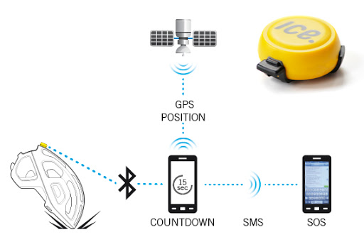 ICEdot to zwykły czujnik przeciążeniowy wzbogacony o moduł BlueTooth montowany do kasku. Do jego poprawnego działania niezbędny jest telefon komórkowy i zasięg sieci. W razie gdy przydarzy nam się kraksa, czujnik zarejestruje przeciążenie i natychmiast połączy się z telefonem. Ten z kolei, wyśle SMS z informacją do określonych wcześniej w odpowiedniej aplikacji osób. Dowiemy się z niej o tym, że coś się stało, oraz poznamy przybliżoną lokalizację nadawcy. System ma dodatkowe zabezpieczenie, gdy np. po wypadku jesteśmy przytomni i nie nie chcemy nikogo niepokoić lub gdy kask nap po prostu upadnie. System wysyła informację z niewielkim opóźnieniem tak, że mamy chwilę na jej anulowanie. Dodatkową częścią systemu ICEdot jest bransoletka na rękę ze specjalnym kodem. Gdy znajdziemy jej właściciela wystarczy, ze wyślemy SMS na podany na niej numer wraz z kodem znajdującym się na jej wewnętrznej stronie, a otrzymamy wszystkie informacje na temat ofiary. Może to być niezwykle ważne dla ratowników udzielających pomocy.