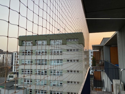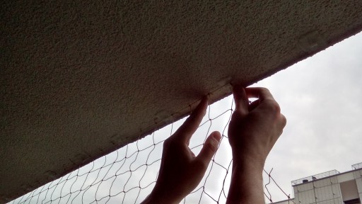 - Dolną krawędź siatki można zamontować do poręczy balkonowych lub do posadzki balkonu.