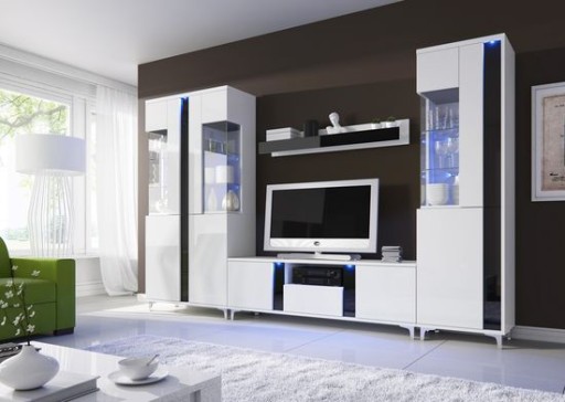 Meblościanka MARCO 1+ LED z frontami w wysokim połysku.