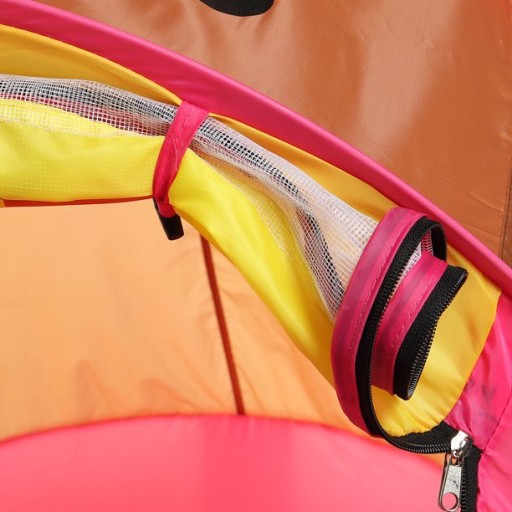 Namiot zapakowany jest w zapinany pokrowiec z rączką. Dzięki czemu łatwo go przechowasz i zabierzesz ze sobą do samochodu, na wycieczkę czy kamping.